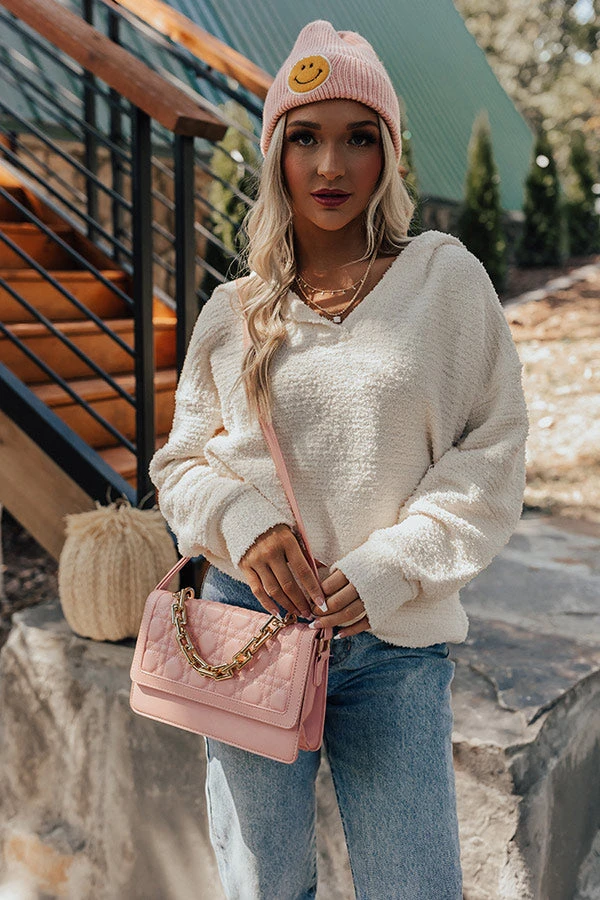 Cozy on up in this adorable cream hued sweater featuring soft knit material, a v-cut neckline with an oversized collar, long loose sleeves, and a slouched silhouette that ends in a straight hemline!
