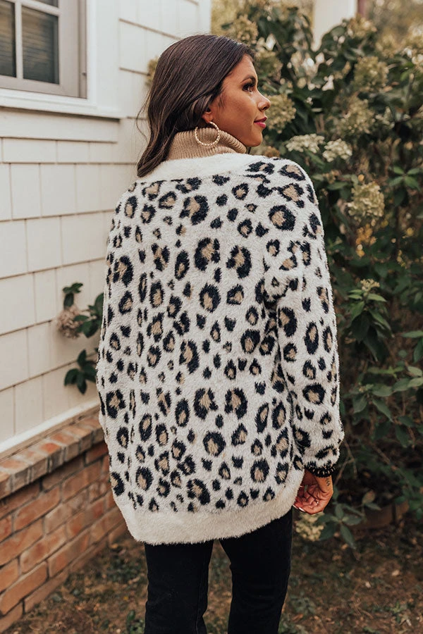 Everyone is sure to fawn over you stunning OOTD when you layer up with this adorable ivory colored cardigan featuring ultra soft lightweight material with fuzzy texturing, a bold neutral and black leopard print, a button down front with a deep v-cut neckline, long loose sleeves with fitted cuffs, and a relaxed silhouette that falls into a straight mid-thigh length hemline!