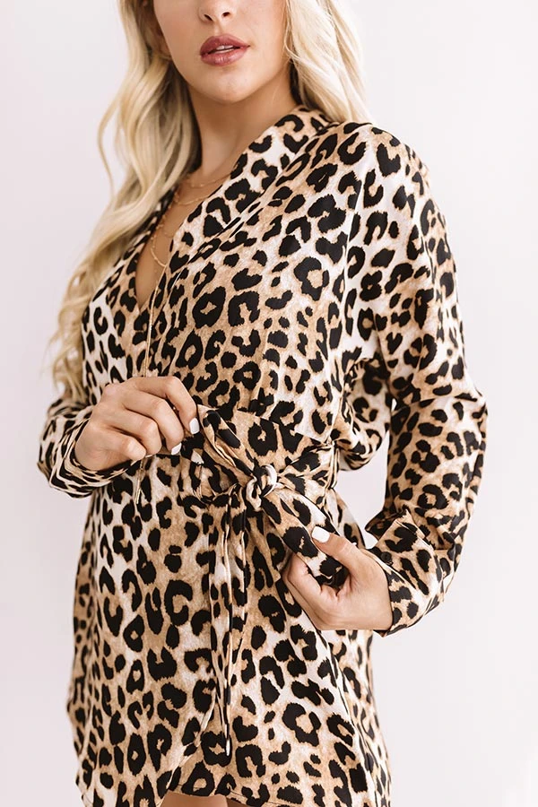 You are sure to be a “femme fatale” in this fierce and flirty romper featuring lightweight material, a bold ombre leopard print, a wrapped bodice with a v-cut neckline and a tie belt, long loose sleeves with fitted button closure cuffs, and relaxed fitting shorts that fall into straight hemlines! You can style this piece with a merlot pump and a chic crossbody, or you can wear it with some simple black heels and our “Exclusive Event Hat in Black!”