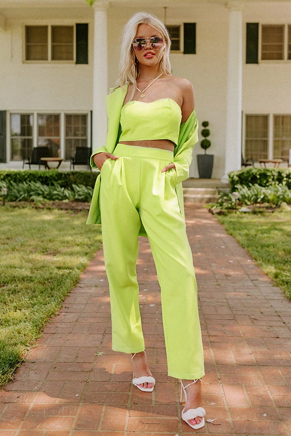 Dress like you’re famous in this chic lime colored blazer featuring luxe material, a strapless sweetheart neckline, a zip closure back, and a straight cropped hemline! This bustier has padding that is sewn in.