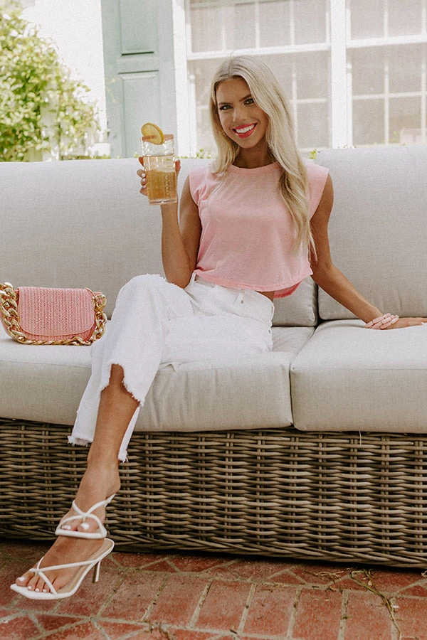 Keep casual in our cute pink ‘Making Mischief’ top featuring lightweight material, a rounded neckline, trendy cap sleeves, and a relaxed silhouette that ends in a straight cropped hemline!