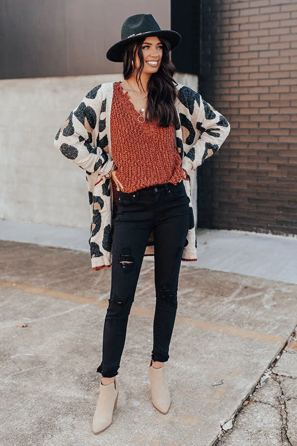These pants fit you in all the right places, as they should! The black ‘Malibu’ skinnies features lightweight comfortable denim, distressed detailing, a mid-rise waistline with belt loops, a flattering skinny pant leg with an asymmetrical double frayed hem, a classic 5-pocket, and a hidden zip fly with a button closure!