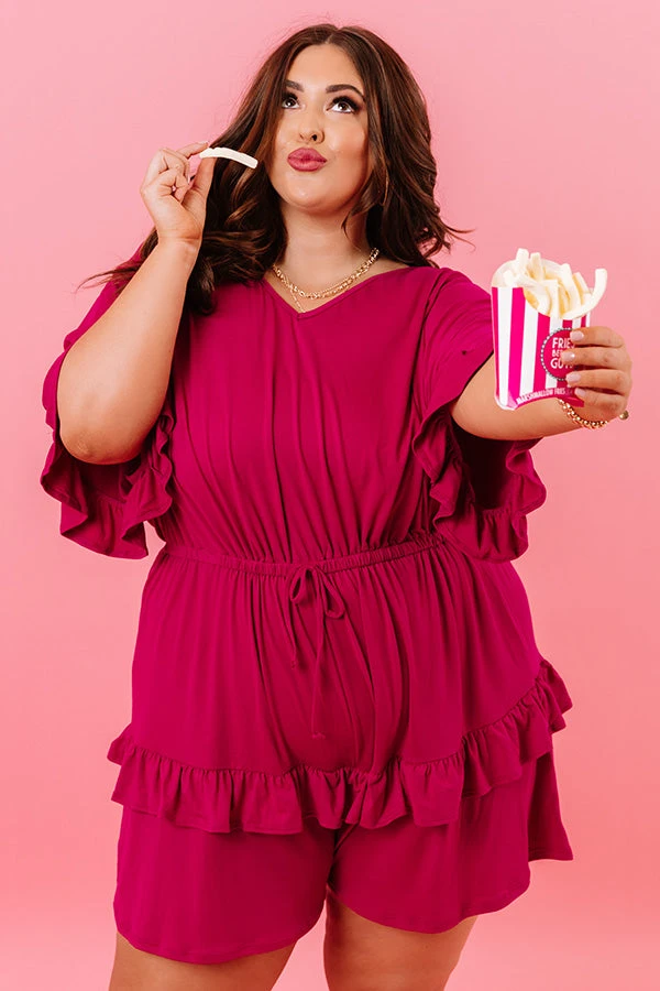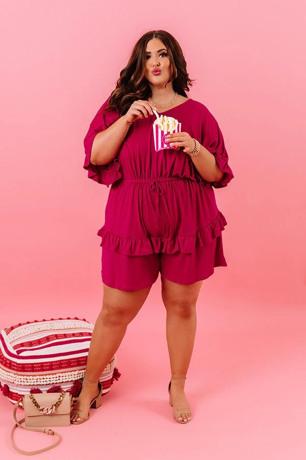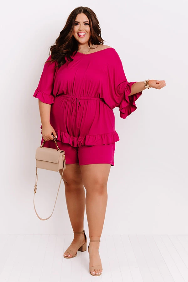 Plus Size – Slay all day in our stunning orchid colored ‘Message In A Bottle Romper’ featuring lightweight material, a v-cut neckline, short loose sleeves with flared cuffs, ruffled trim and accent seam detailing, a cinched waistline with a tie belt, and a relaxed shorts silhouette that falls into uneven mid-thigh length hemlines!