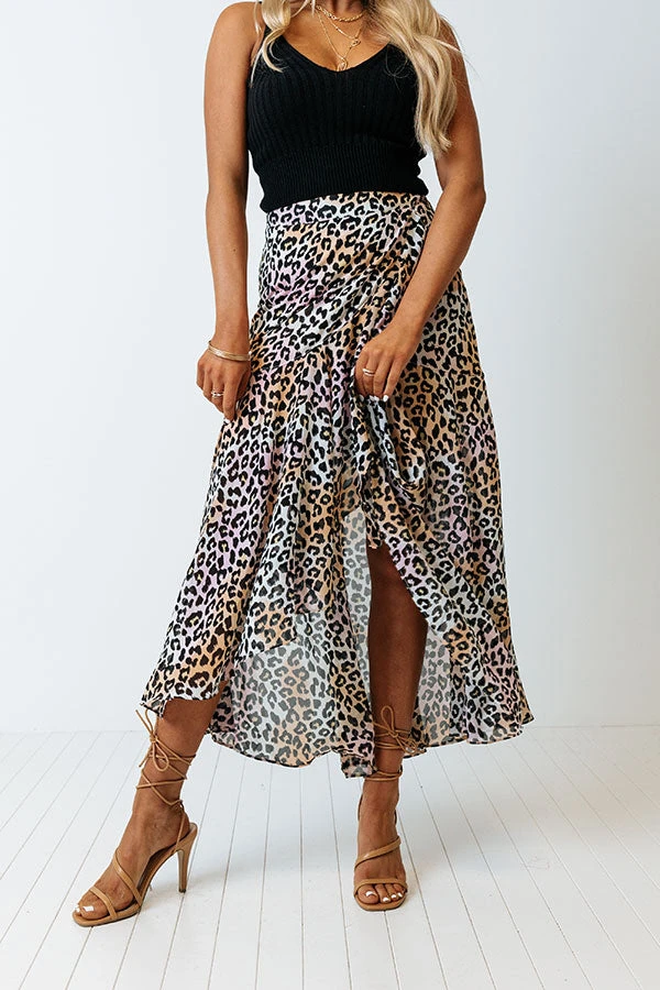 There is no better piece to make an outfit with than our pretty peach colored ‘Only Sunshine’ skirt featuring lightweight breezy material patterned with a black leopard print print, a high waistline, and a relaxed silhouette that falls into a high/low tulip hemline!