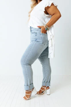 The Averie High Waist Distressed Straight Leg Jean In Latte Curves