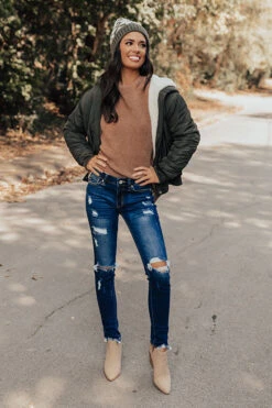 The Mayson Midrise Distressed Skinny In Dark Wash