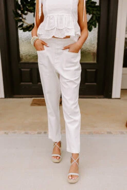 The Averie High Waist Distressed Straight Leg Jean In Ivory
