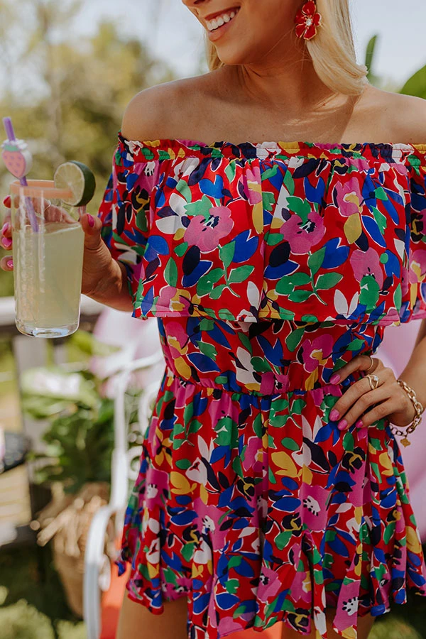Be bold this spring in our charming ‘Seas The Moment Romper’ featuring lightweight material patterned with a red, green, and royal blue hued floral print, a straight elastic off-shoulder neckline, an overlay bodice with drop sleeves, a cinched waistline, and a relaxed shorts silhouette that ends in ruffled upper-thigh length hemlines! on products