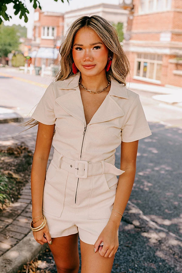 Stay Sophisticated Denim Romper In Light Beige