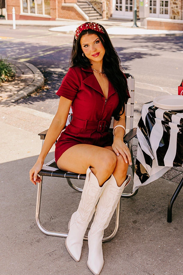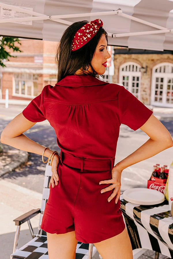 Stay Sophisticated Denim Romper In Wine