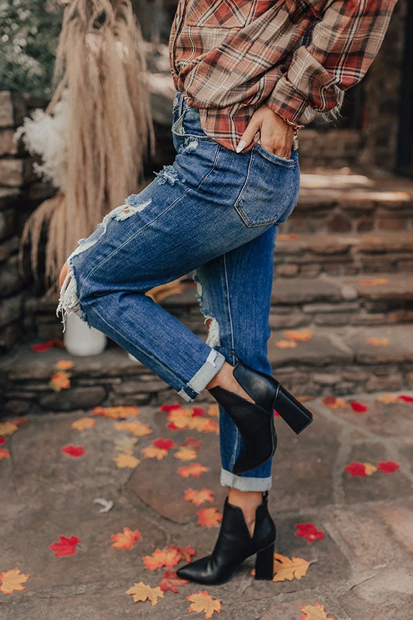 Step out in our fabulous ‘Casa’ jean featuring medium wash denim material with accent fading and ultra distressed detailing, a high waistline with belt loops, a hidden zip fly with a button closure, a classic four-pocket cut, and a relaxed silhouette that ends in rolled ankle-length hemlines!