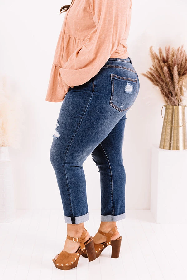 Plus Size – Life is more than just fitting into your jeans, but we believe you will LOVE the look and feel of our ‘Kali girlfriend jean featuring lightweight dark wash denim material with distressed detailing and subtle accent fading, a midrise waistline with belt loops, four pocket cuts, a hidden zip fly with a button closure, and a form fitting silhouette that falls into ankle-length hemlines that can be cuffed!
