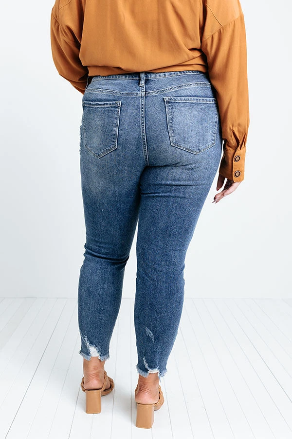 Strike a pose in our adorable plus size ‘Kanan’ skinny featuring lightweight medium wash denim material with accent fading and distressed detailing, a high waistline with belt loops, a hidden zip fly with a button closure, a classic five pocket cut, and a relaxed silhouette that falls into frayed ankle-length hemlines!