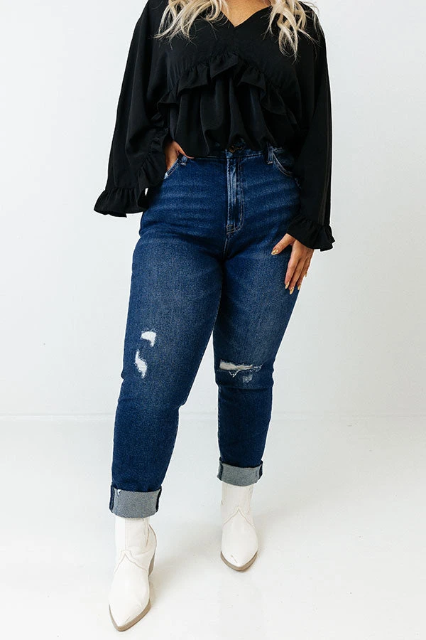 You are sure to look fabulous in our ‘ Lorelei’ jean! Featuring medium wash stretchy denim with accent fading and distressed detailing, a high waistline with belt loops, a classic four-pocket cut, a zipper and button closure, and a flattering figure hugging silhouette that ends in an optional rolled cuff hemline.