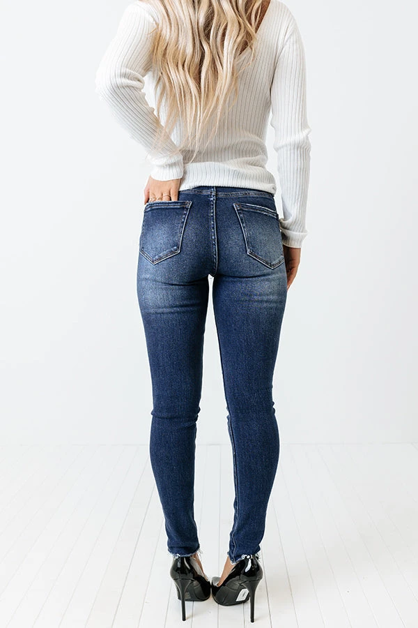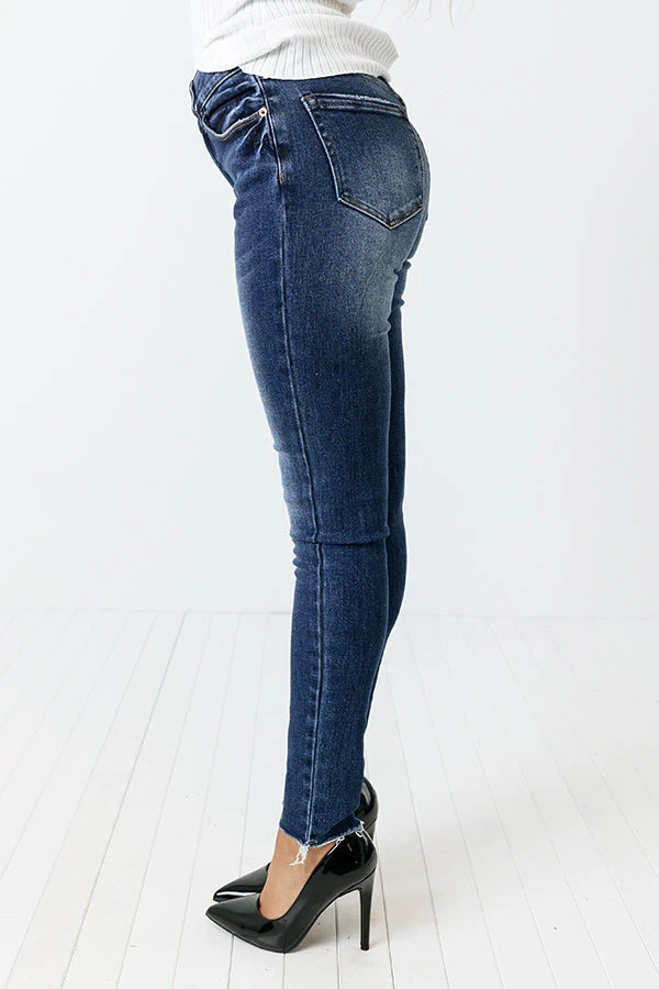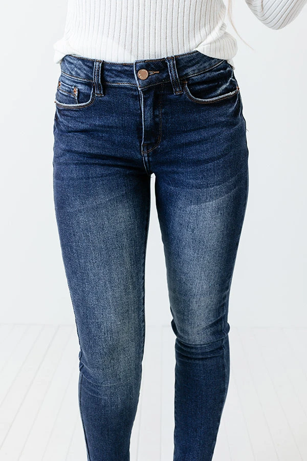 Take your denim to the next level with our trendy ‘Ottie’ skinny featuring dark wash material with subtle accent fading, a midrise waistline with belt loops, a classic five pocket cut, a hidden zip fly with a button closure, and a flattering figure hugging silhouette that ends in ankle-length hemlines!