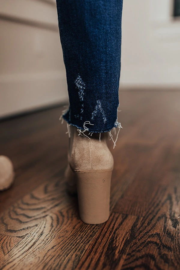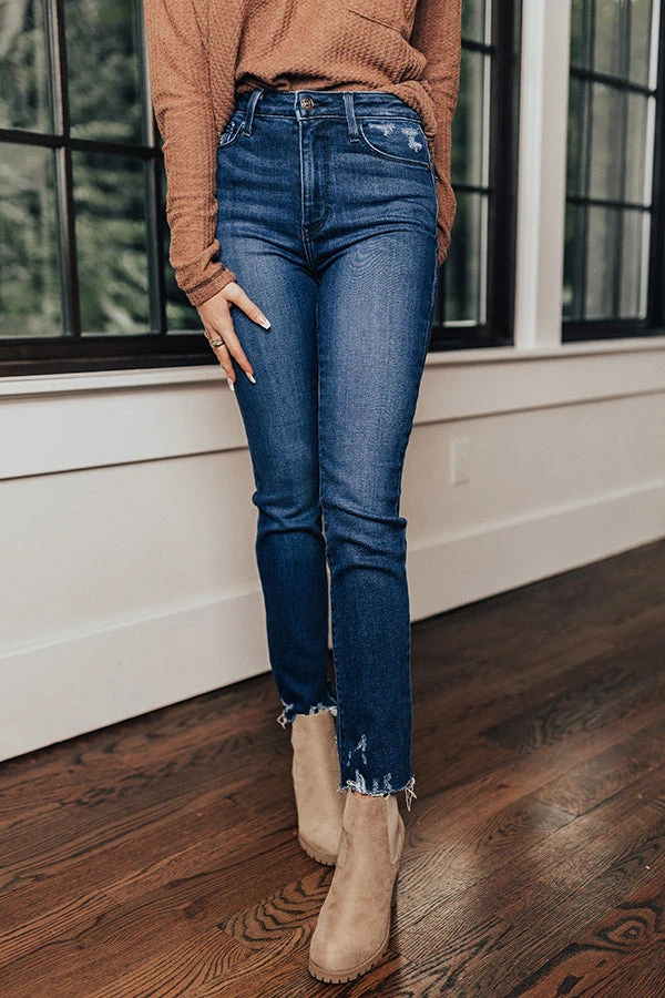 Our fave cold weather denim just dropped! Our upscale ‘Tuck’ skinny features lightweight medium wash material with accent fading, a high waistline with belt loops, a hidden zip fly with a button closure, a classic five pocket cut, and a flattering figure hugging silhouette that tapers into frayed ankle-length hemlines!